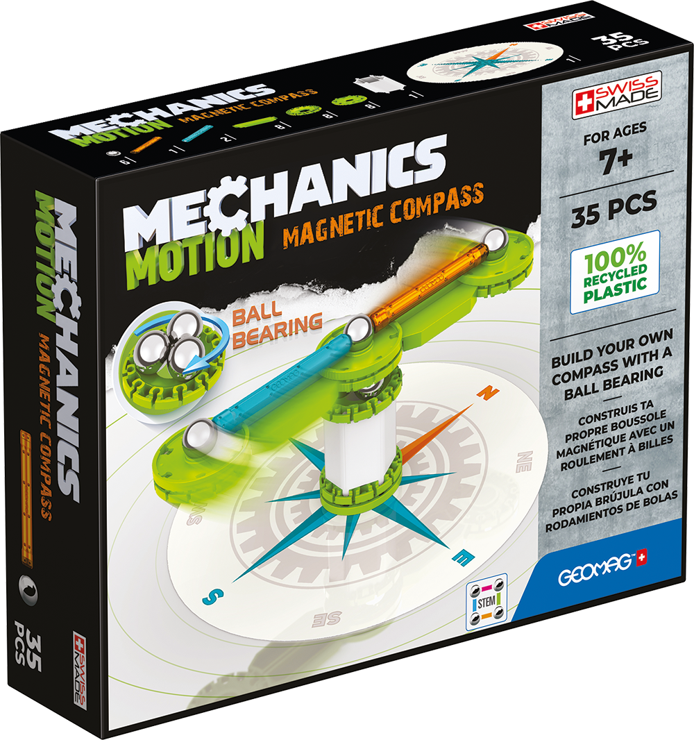 napravite svoj kompas. Geomag gravity linija služi kao nastavno sredstvo u oblasti fizike. Učenje magnetizma, polariteta, inercije, gravitacije, magnetnih polova, zakona akcije i reakcije olakšano je uz geomag gravity liniju. Kompas je najmanji set iz gravity linije koji dolazi u setu od 35 delova koje je neophodno pravilno sastaviti da bi kompas bio funkcionalan. Za sve mališane koji vole da sami stvaraju, budu kreativni i inovativni ovo je izuzetna igračka.