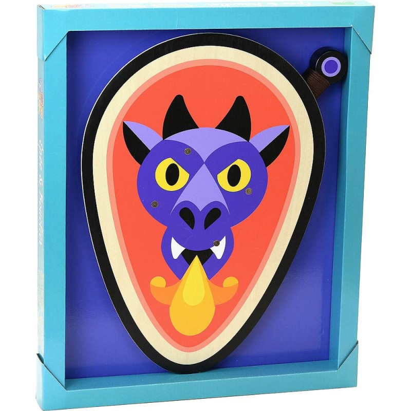 Svaki mali drugar poželeće da u svojoj kolekciji ima baš ovakav mač i štit sa motivima zmaja napravljen od drveta.