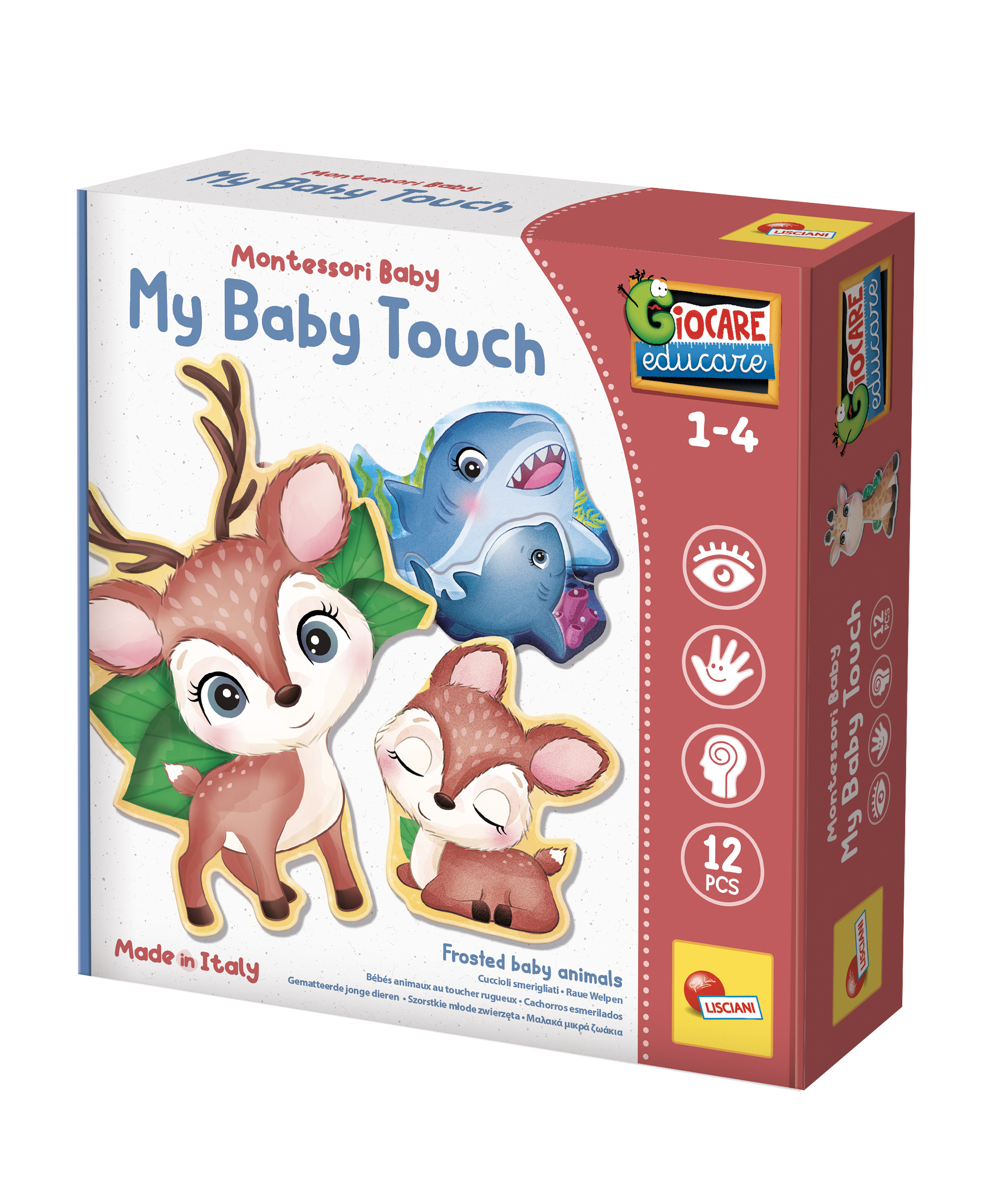 Touch My Baby je inovativna edukativna slagalica brenda Lisciani, osmišljena za najmlađe kako bi razvijali svoja čula kroz igru. Ova slagalica kombinuje klasično slaganje sa taktilnim elementima, omogućavajući deci da istražuju različite teksture i materijale dok slažu slike simpatičnih beba životinja.