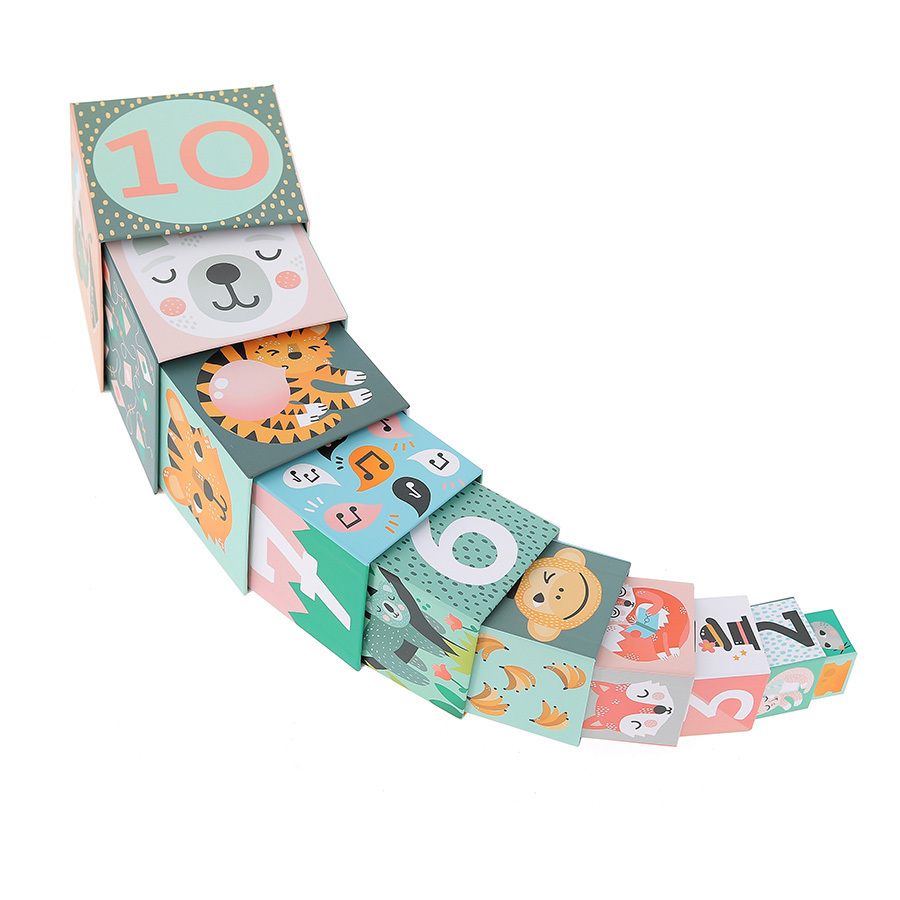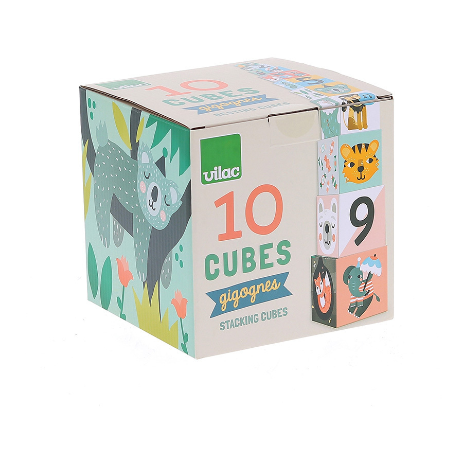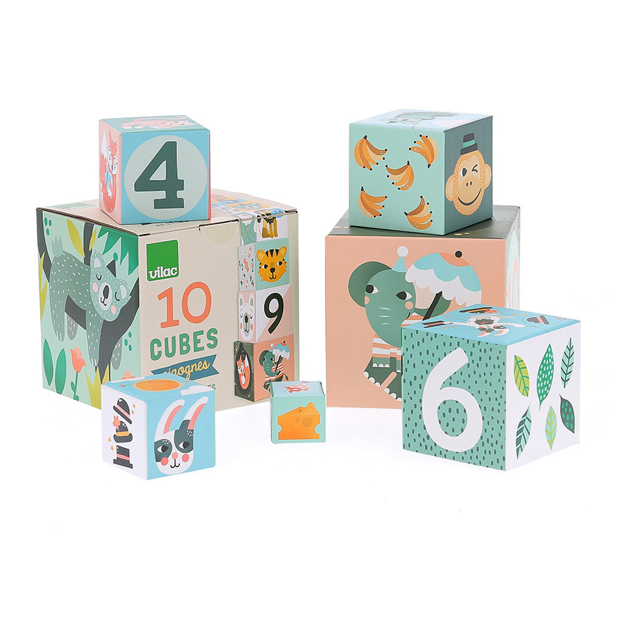 Vilac Kocke za slaganje pastel od kvalitetnog kartona za slaganje i učenje brojeva, životinja, i novih reči.